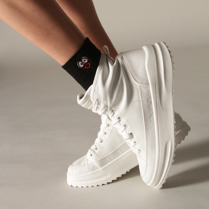 Hergestellt aus einer hochwertigen Baumwollmischung, die nicht nur komfortabel und atmungsaktiv ist, sondern auch dafür sorgt, dass deine Füße den ganzen Tag frisch bleiben.